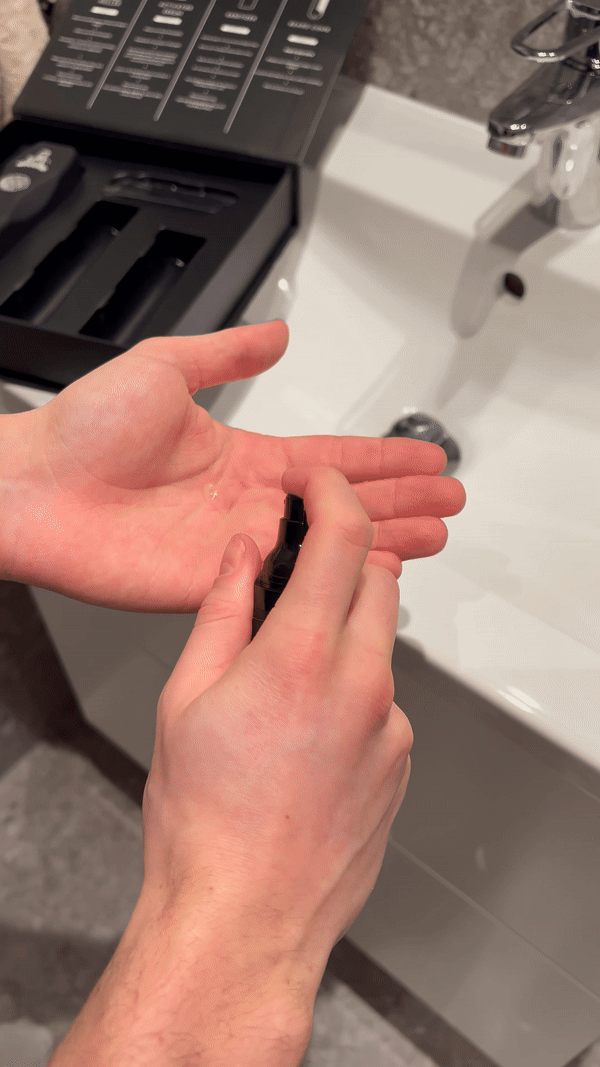 - Breng 2-3 pompjes serum aan, afhankelijk van de grootte van het gewenste gebied