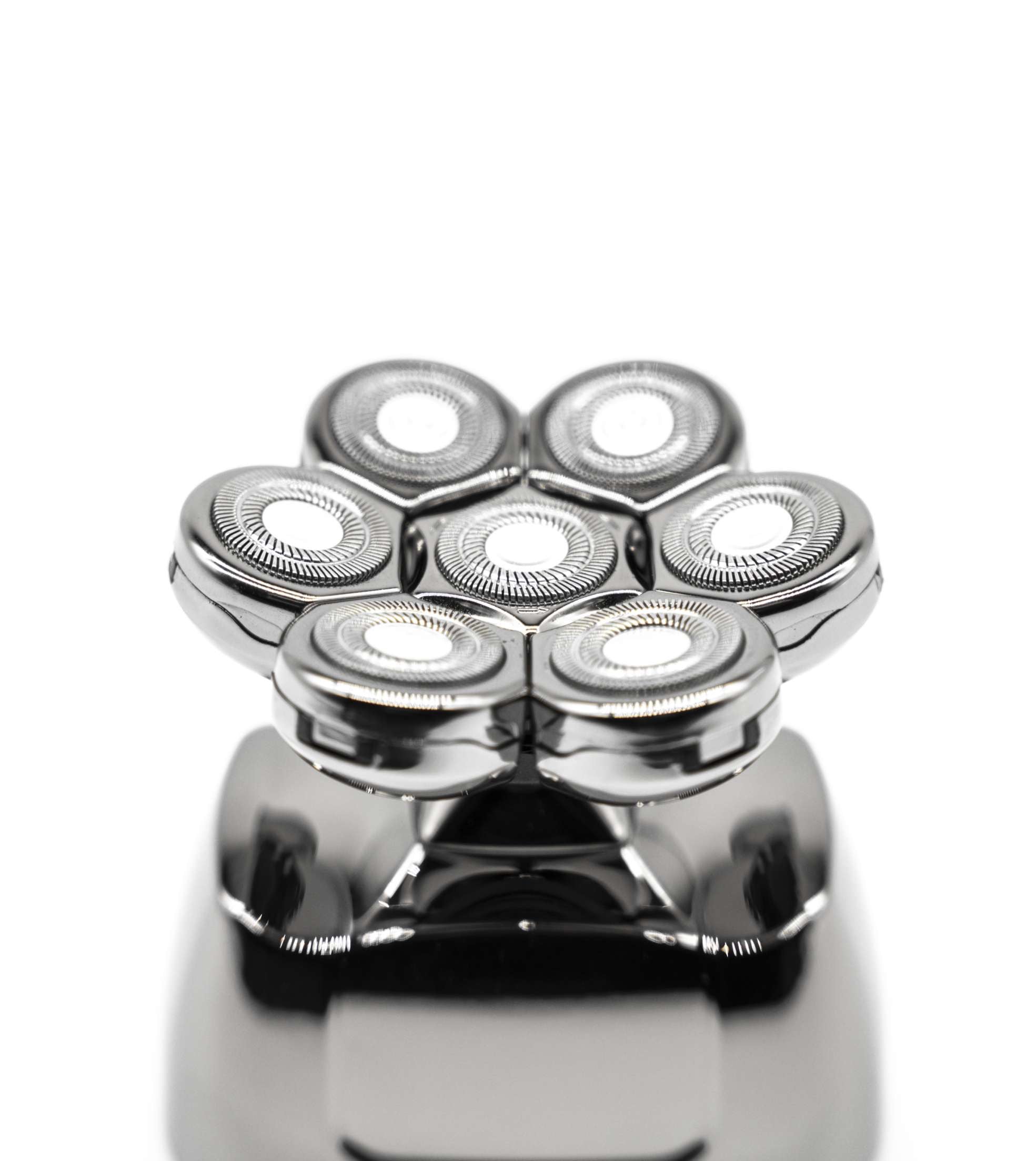 Snel en efficiënt precisiescheermes: 7D-roterende kop met zwevende technologie, nauwkeurig dubbel mes en verstelbare motor voor een zachte scheerbeurt zonder irritatie.
